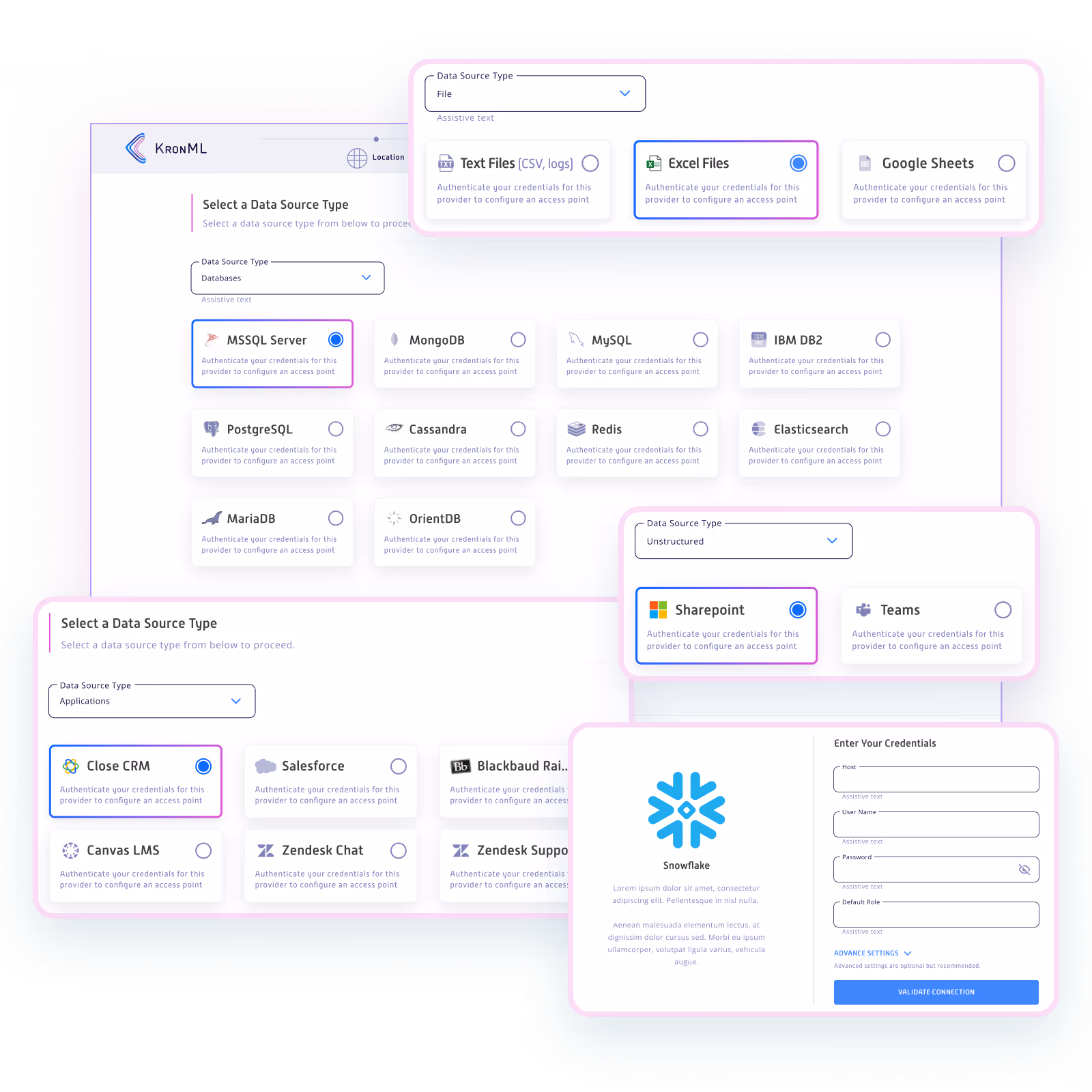 Directly embed AI-powered insights into your core business processes for optimal impact. KronML provides effortless connectivity with your current systems, APIs, and applications.